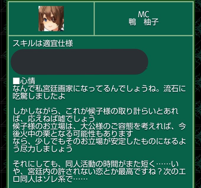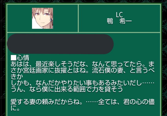 うん、「また」なんだ。済まない。 シン君にまた例のアレがバレたようです。 これを頼みながら鷹が「いやでもパンチはちょっと流石に……」とか言ってたのウケるんですよね。暴力度合い変わらんやろと。 ともあれ更科先生、今回もありがとうございました!! クリエイティブRPG/更科雫様/発注者