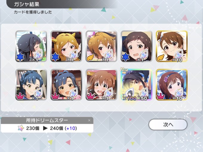 はい、無料の単発の後の最初の10連で完全勝利、しかもくるみちゃん二枚抜き、神ですね