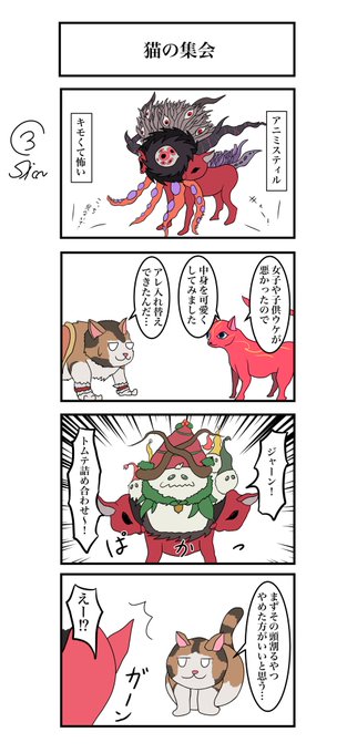 最近新作出してないけどクリプト4コマ過去のやつ再掲 「アニミスティル」「セリーズ」「ティラノサウルス」「デスフェニックス」 #クリプトラクト #クリプトお絵描き #4コマ漫画