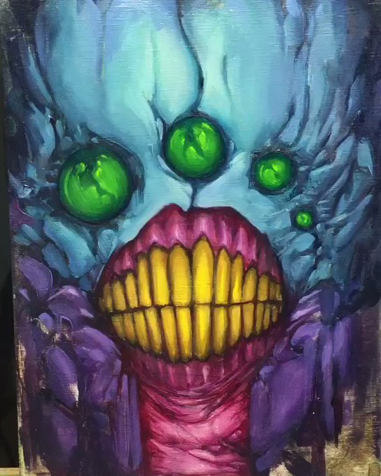 Painted this happy fella with oils on Twitch the other day. I’ll be hopping on there to work on these little paintings from time to time, so make your way over there and follow me if you wanna see my process and chat about all the things!