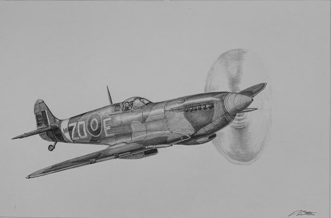 I've just finished this little spitfire drawing, from a photo by @CHartleyPhotos
