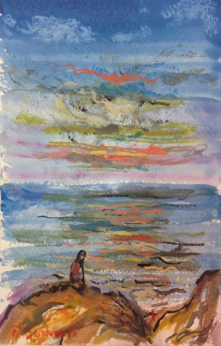 New small painting made and signed today. "Pondering By the Sea." Gouache on watercolor paper, 14x21cm.