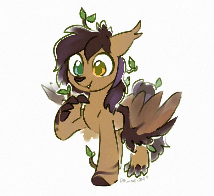 a patron asked that I draw something for myself, so here's Trail Mix after a rainy day (she is part tree) 🌱