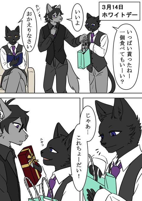 #ミスティフォレスト ピラト&ケージ 「なぁなぁ、俺めちゃ似合ってない?!」 「おぉ、似合うじゃねぇか!どうせなら帽子もかぶったら?」