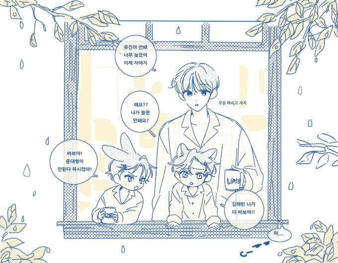비가 오잖아...그럼 막내즈와 뭉대를 그려야죠. 애들 키우기 힘든 뭉대뭉대씨~🍀
