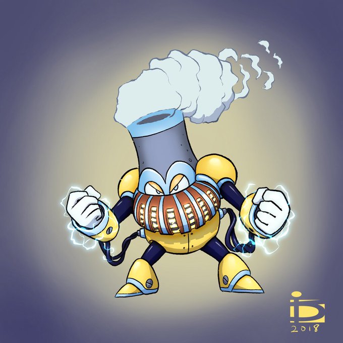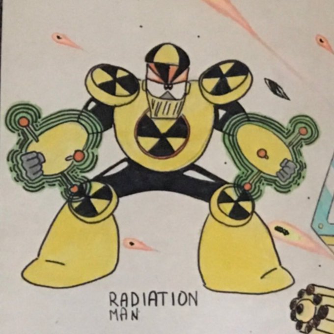 Throwback redesign from when I entered a Mega Man Design contest and “won.” Shield Man/Reactor Man