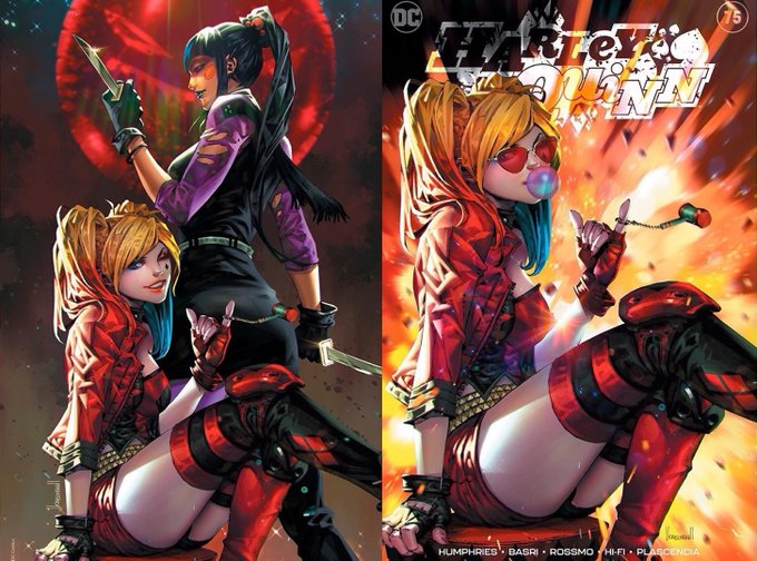 Novas imagens oficiais de Arlequina, Punchline e Coringa para a HQ 'Harley Quinn #75'.