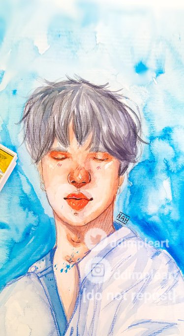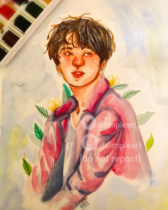 Fiz esse desenho na aquarela e tô apaixonada 🥺🥺 #JUNGKOOK #yourartstell #fanartbts @BTS_twt