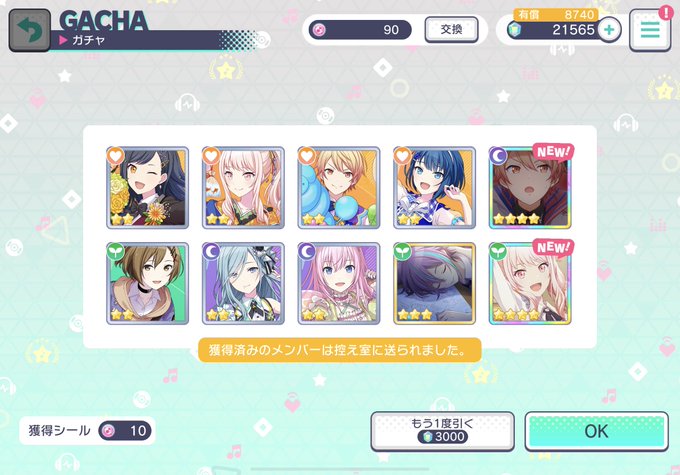 90連で⭐︎4が5枚出たし本当に私の運、最近どうなってるんだ…そしてやたら瑞希ちゃんガチャだった