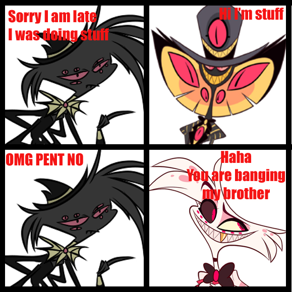 Bad memes anyone? #SirPentoious #Arackniss #AngelDust #HazbinHotel