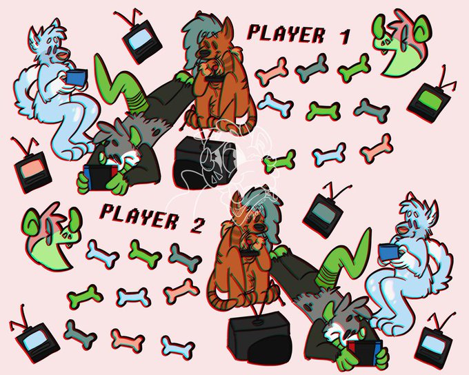 video game design with most of my sonas playing their favorite games together! I'll have this updated to my Redbubble soon 🥰