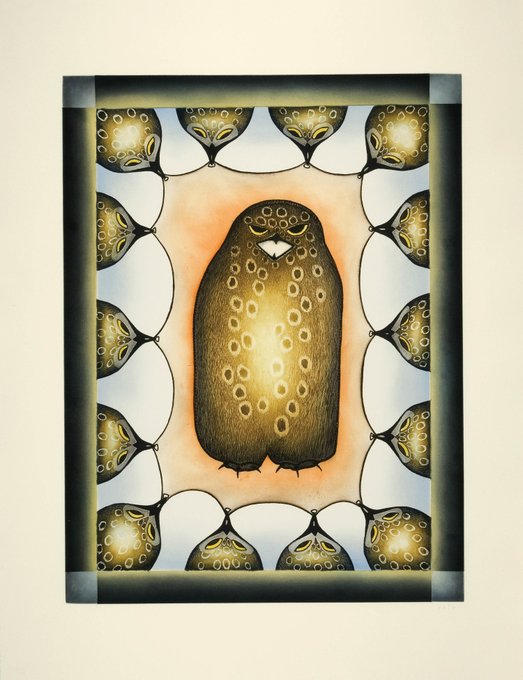Today's #CapeDorsetGraphics post is "Owl on Sealskin" by Kananginak Pootoogook (1935 – 2010), from 2009.