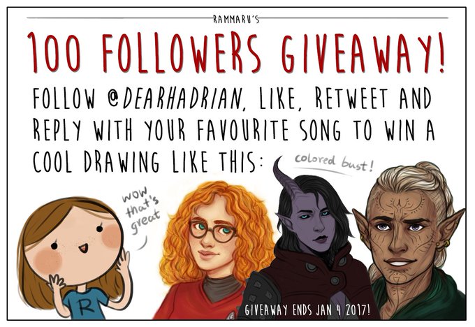 100 followers #giveaway! Follow, like, RT and reply with your fav song to win a colored bust of any character or OC you want :D Good luck!