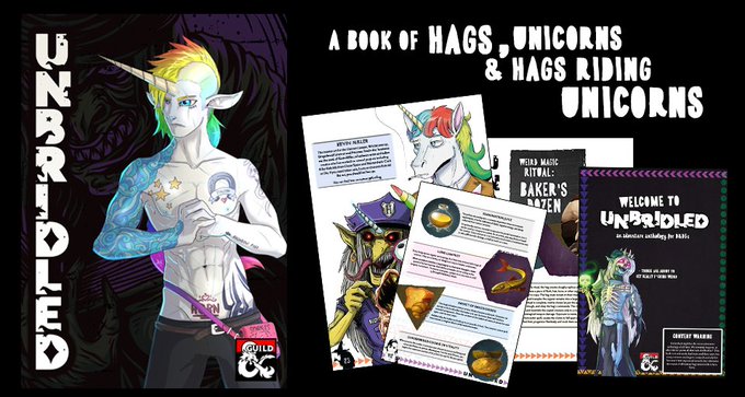 UNBRIDLED: A book of Hags, Unicorns and Hags Riding Unicorns, a book of 19 adventures, weird magic, hags and horn-based puns from myself and a bevy of talented creators
