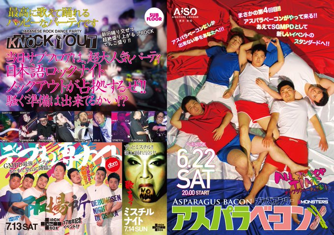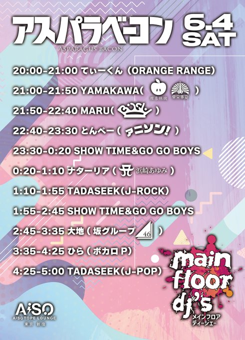 アスパラベーコン恒例、ジャンル別交代DJ!!そしてJ-POP縛り!大好評のBiSHにニュージャンルのサザンまで!もう世代超越でフロアぶち上げお約束いたします!!