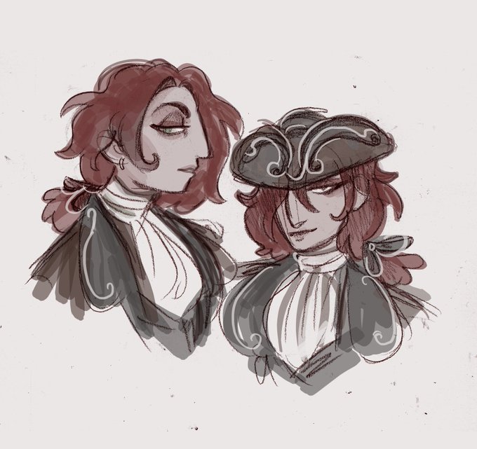 working out designs for new ocs... some kind of 18th century vampire story 🍷