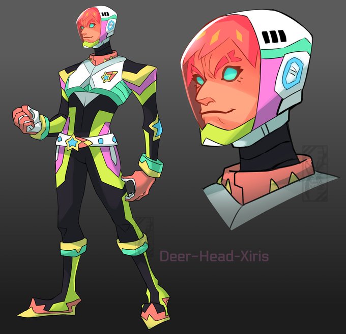 I have funky lore made up for my island rep where they're an alien hiding on earth and the Robot Hero item is their spaceship so I decided to design them a mech and pilot suit, with poster featuring villagers!