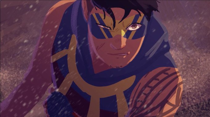 Illustration based on our #MasksRPG campaign!! I play the Legacy so here's Gravy (far right) and his aunt and niece, the other two members of the Agila. He's a Filipino hero trying to live up to the family name in Halcyon city!