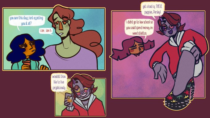 various arts of Parma Jawn, @spacemeowboy cold, cold son (aka smile for me oc)
