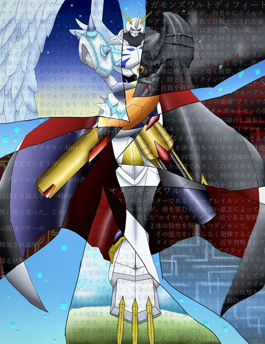 けいてぃさん(@23_0626)とのラフ画交換でオメガモンとデュークモン描かせていただきました!! いただいたラフ画は2枚目! 背景はデジカのデュークモンを参考に、デジ文字は非公式フォント使用させていただいています!! ありがとうございました!! #デジモン #digimon #オメガモン #デュークモン