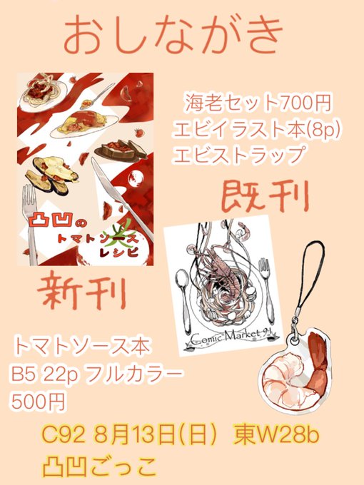 夏コミおしながきです!! 今回の新刊はトマトソースです、三日目 東W28bにてお待ちしております! #c92 #C92告知 #コミケ92