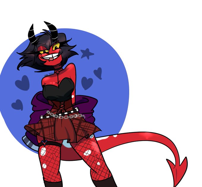 Right now I draw alot of Helluva Boss, and I also enjoy drawing outfits & aesthetics of (space) all kinds 🖤❤🌌
