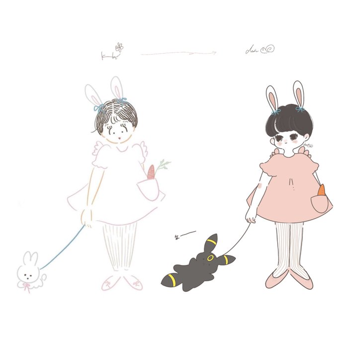 どひゃかわいいの出来て大満足😭♥ @__kahoillust__ とコラボイラスト💐 お互いのイラストを自分の絵柄で描いてみよう~~🌷 楽しすぎたよこれ~~🥺✊