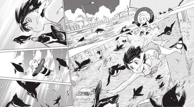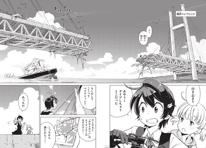 発売中の電撃マオウ3月号にコミック『終末ツーリング』の最新話が掲載! 荒廃し、水没した東京ビッグサイトで海水浴を楽しむ2人だが……。