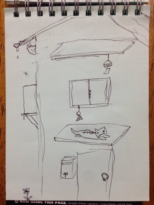 ワシは背景をすごい密度で描き込んでると思われてるけど、実は線はめちゃくちゃ少ない。物事を記憶して、ディティールを極端に簡略化して、ただ置いてるだけなのだ。