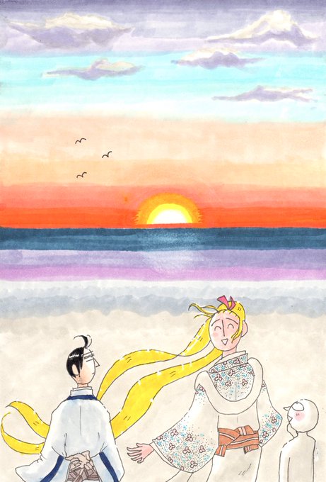 『服部と和賀』番外イラスト 春はあけぼの。 #創作漫画 #ギャグ漫画 #ほのぼの #日常 #アナログ