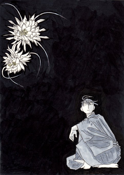 『服部と和賀』番外イラスト 月下美人。 #創作漫画 #ギャグ漫画 #ほのぼの #日常 #アナログ