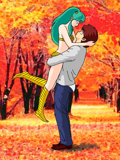The 2nd version of Lum chan floating in Ataru’s arms... 調子に乗って浮いているシリーズ第2弾です♪ #UruseiYatsura #LumInvader #AtaLum #Autumnleaves #floatinginhisarms #うる星やつら #ラムちゃん #あたラム #腕の中で浮いてる
