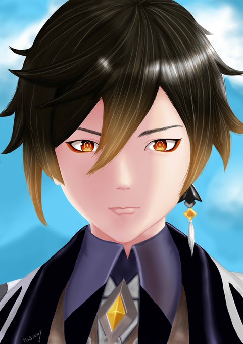 描けた〜 もっとリアルな感じにしようと思ったけど、 この辺で勘弁しときました(゚ω゚) つーか、正面苦手やわぁ 口小さ過ぎたか? まぁいいや… その内色々と修正するかも… #原神イラスト #鍾離先生 #原神 #GenshinImpact