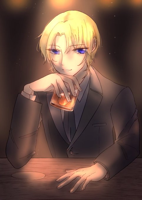 かわを様@kawawo_woが原稿中の私に陣中見舞い…『デビル・クロニクル~極道縁起』の伏見一矢を描いて下さいました😭群青色のふつくしい瞳…相手を挑発(誘惑)する不敵な微笑み…仕事中なのかそれともプライベートなのか…視線の先にいるのは誰なのか…妄想が捗ります😍本当にありがとうございます❣️
