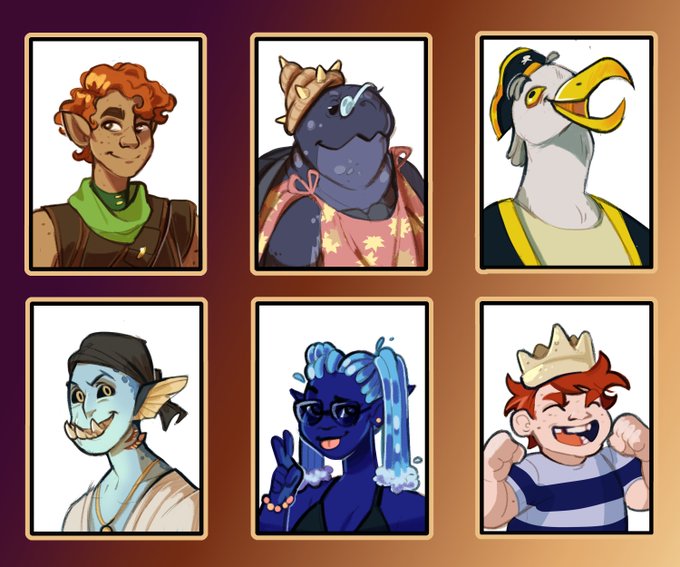 NPC headshots from the #DND session I DM'd last night. We had a beach episode, but I almost killed them with a big crab by accident :(