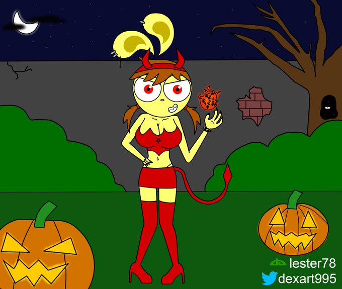 Michelle devil (my yyy oc) #halloween2021 #sexy #boobs #boots #red #anthrofurry #bunnygirl #pumpkin