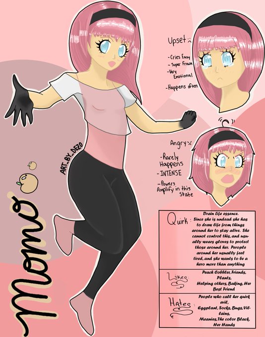 Everyone meet Momo! She's my boku no hero academia oc! She has a partner imma draw eventually, but for now enjoy her in all her pink peachy glory. 💖🍑