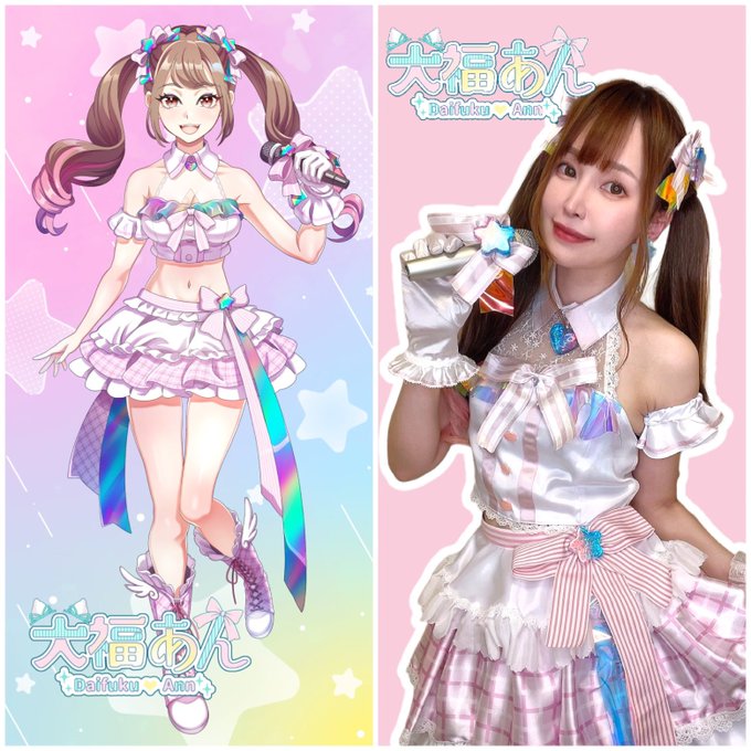2次元の我から逆輸入の衣装お披露目でした🥰💓 2次元と3次元を行き来しちゃう系ライバー!大福あん🥳🫶へへ 衣装がめちゃくちゃかわちいので、いつか生でお披露目できたらいいなぁ…なんてちょっと思いました🥰へへ