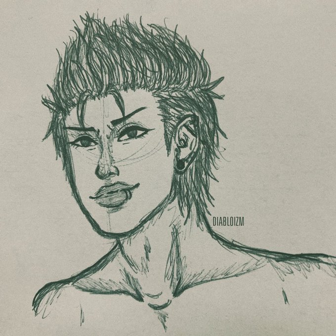 Did a quick pen doodle of a pierced Kuramochi from daiya 💚🤙🏼