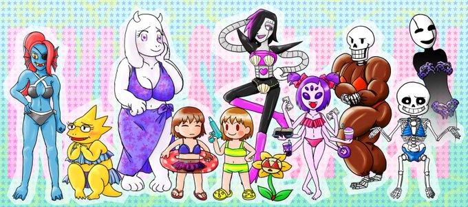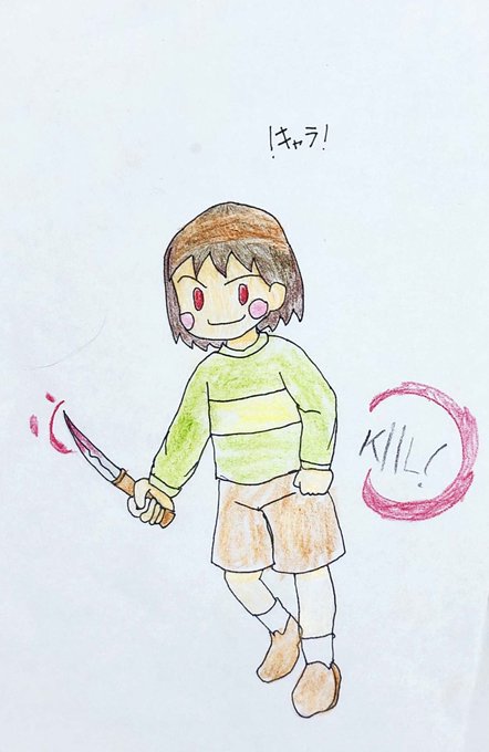 小学生の子供と線画交換(本人掲載許可済)画力変わらないね。 フリスク→下描き:子供、ペン入れ色塗り:ふうる キャラ→下描き:ふうる、ペン入れ色塗り:子供