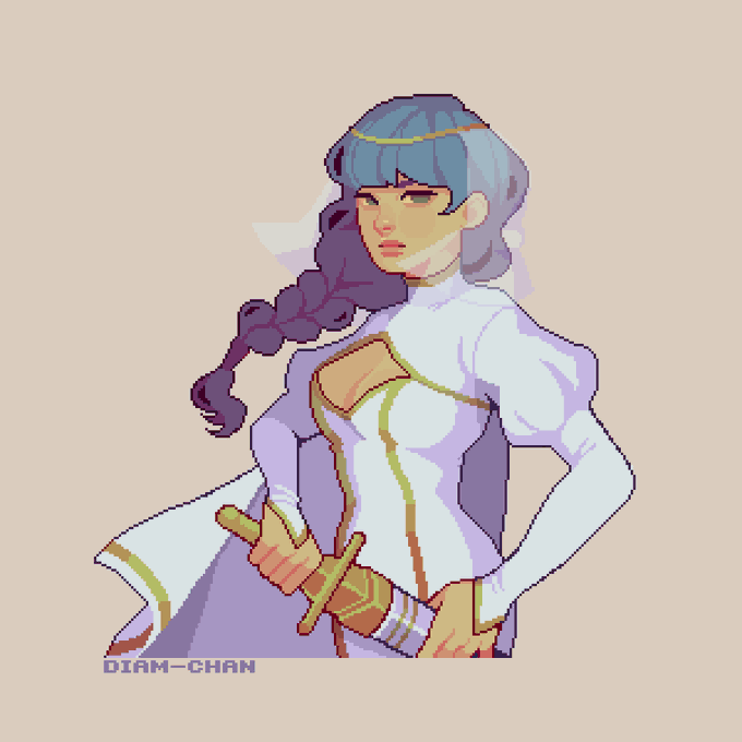 @batfeula Hi! Thank you for this <3 I'm Diam and I like making pixel portraits and game mockups! For other awesome pixel artists, I tag @venninova @spoonsweet1 and @kouenli :>