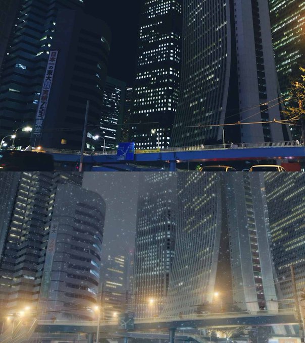 Tokyo at night in anime