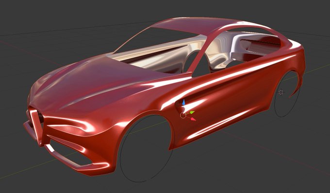 #carmodeling update - last modeling step: simple interiors (with some details in the steering wheel area) and first render preview with the car assembled; next step: some tweaks on exterior materials #blender #b3d #blenderitalia #car #alfaromeo #wip @cgmastersnet