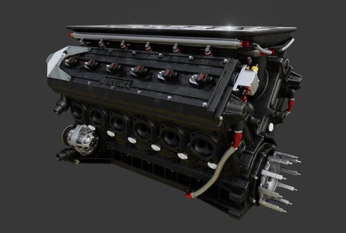 #carmodeling It seems that we have a decent engine for my #f1 car model, now. Thanks to SonicBlue (a user from @BlenderArtists ) for finding some good reference images 👍 #WIP #blender #b3d #blender280 #eevee #ferrari