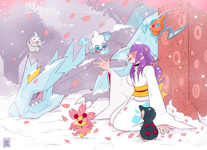 My newest wonderful commission of my oc daughter's PKMN dream team. Drawn by @Captain_Juuter