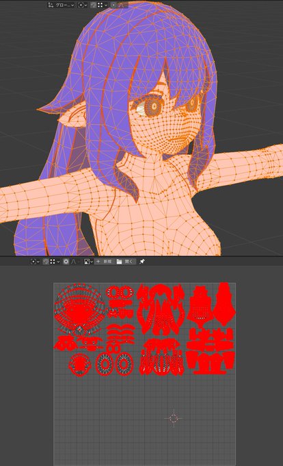 補助ボーンなしのウェイト芸だけで、肩からズリ落ちたオーバーサイズのジャージの動きをなんとか見れるようにするのが難しい。肩が露出してるコスチュームはその辺はとても楽なんです