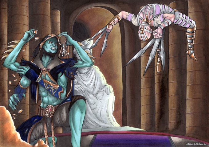 I always wanted to draw Zerrin in her times being in service as a concubine, before her way led to being Mileena's secret weapon in the shadows in MKX til her death. Shang Tsung being fond of this gruesome beauty, pulls the string in her game...