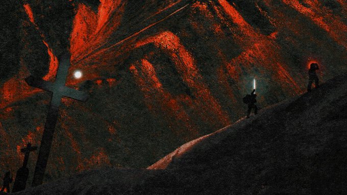a diptych starting with the moments before a young Mark and his mother Aliyah scale the hellish cliffsides of Mt. Doom to find out more about the Holy Seal emanating from the peak.