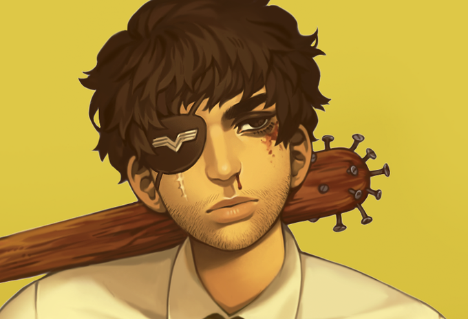 There we go! Thanks to everyone's input, I made a valiant attempt at the #artstylebend / #ArtStyleBendChallenge featuring my boy Cas. I opted for a character with no colours bc I knew I'd struggle tremendously trying to change those... 😅 How'd I do?