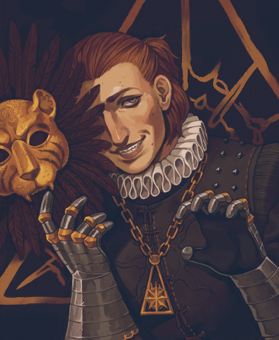 Details! His big brooch is a stylised peony (or rose), and he has a little jingly bell on his nose ring 😊a big soft boy...